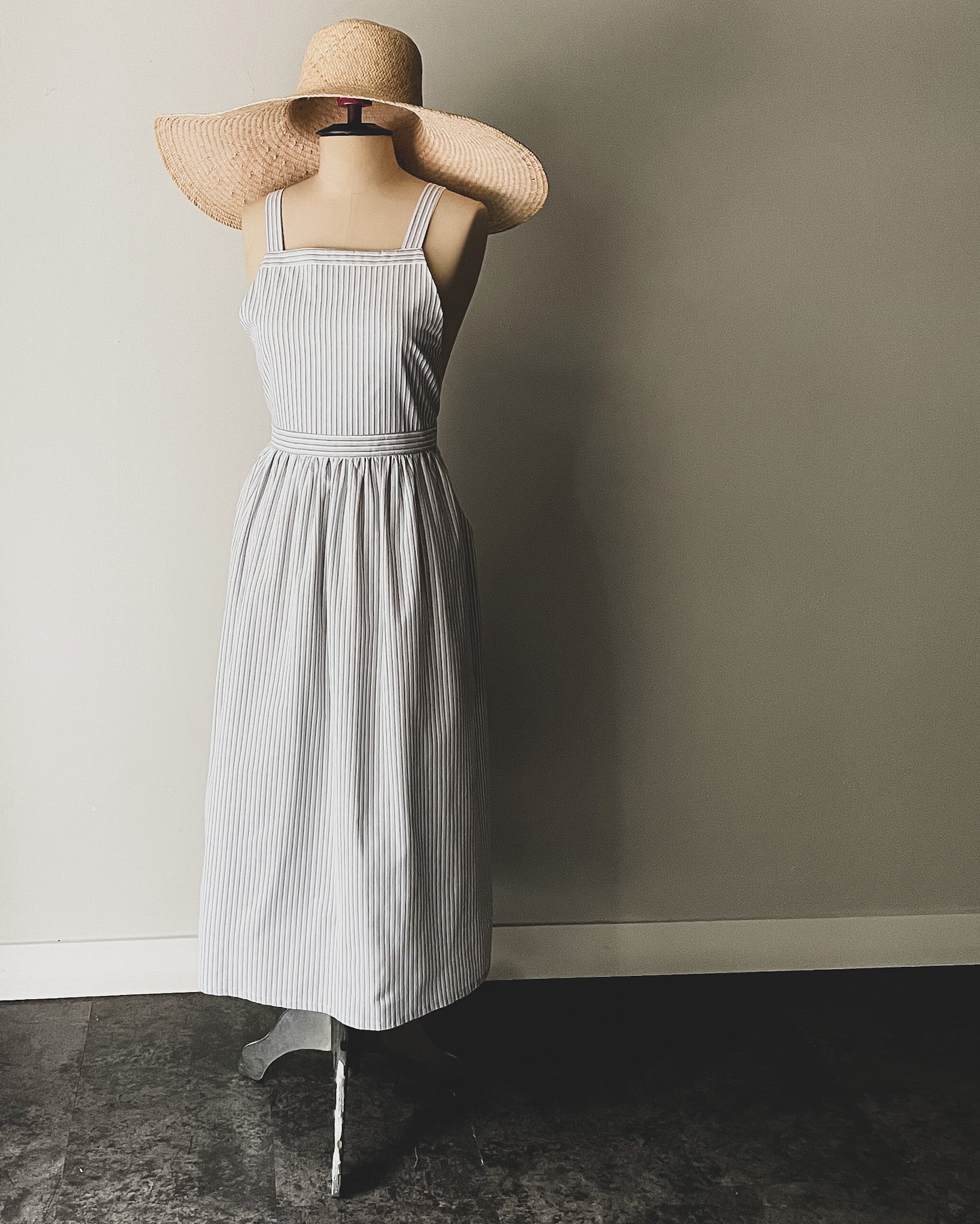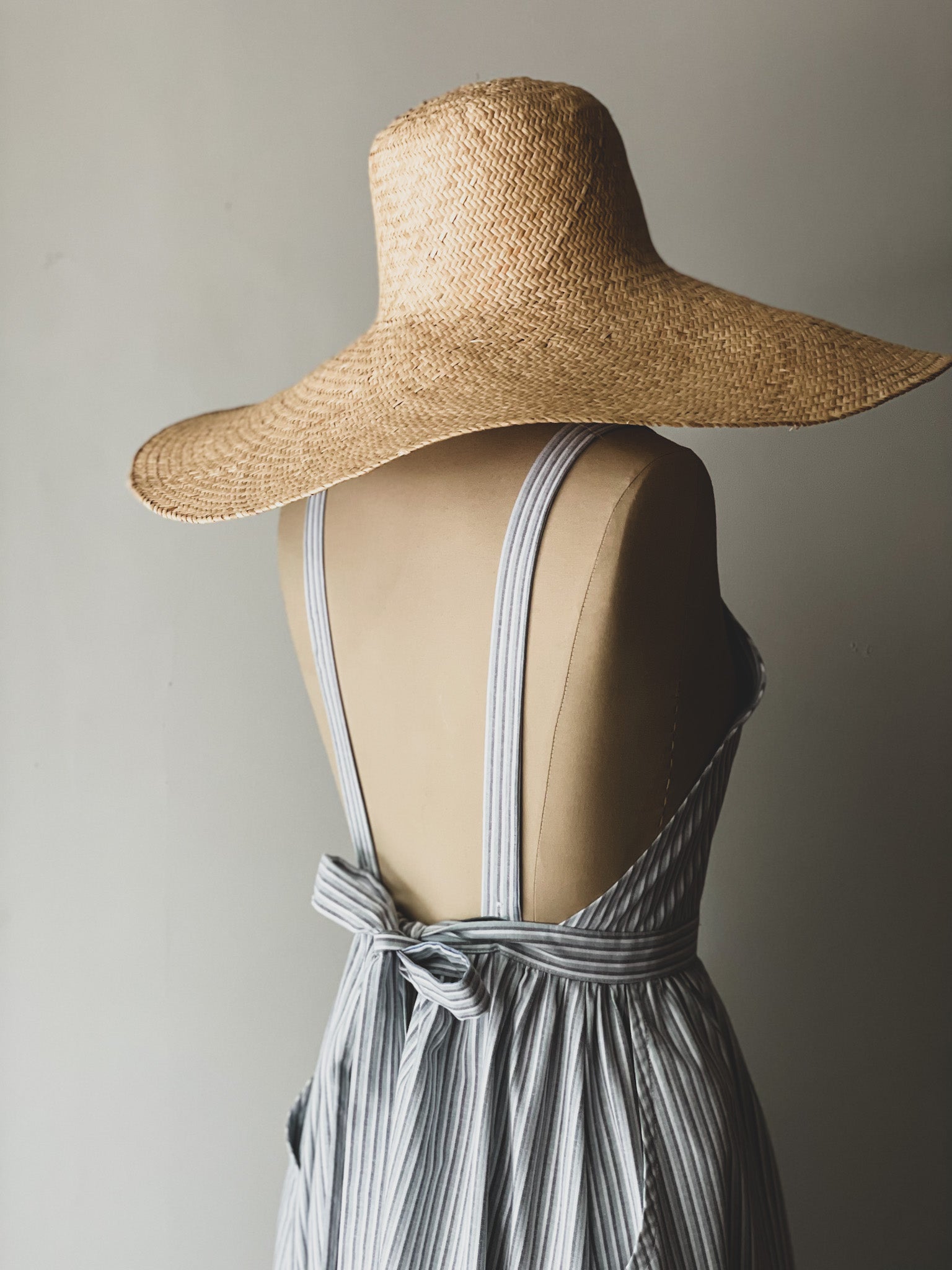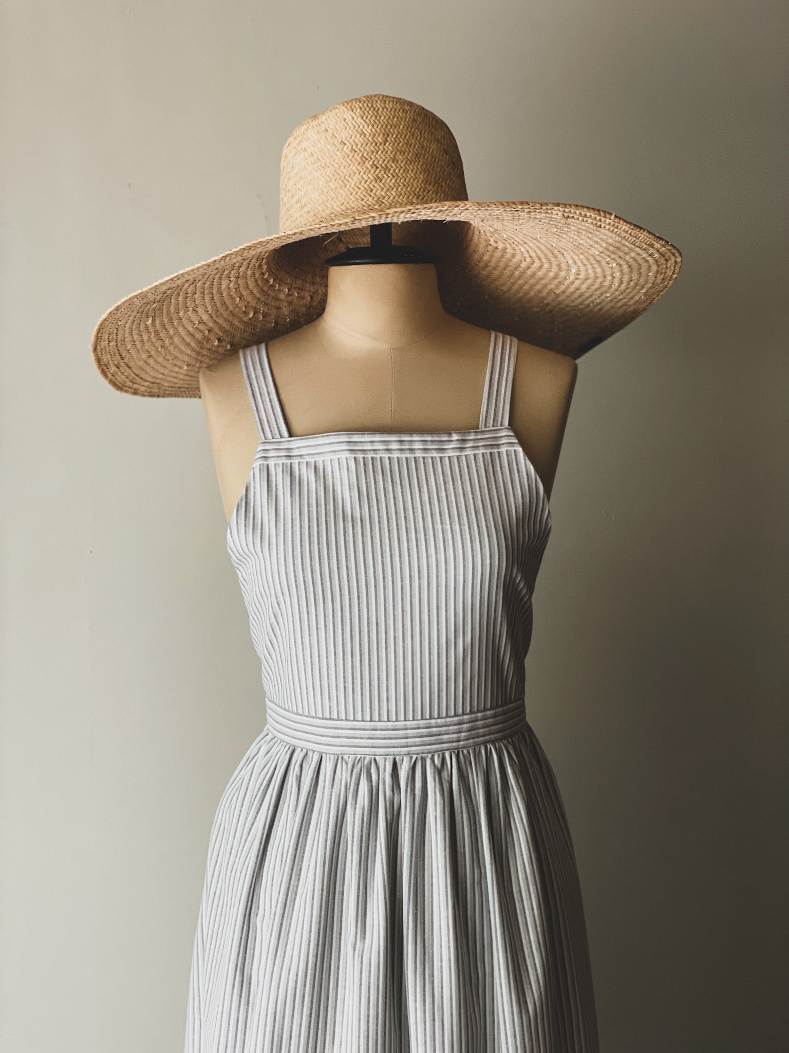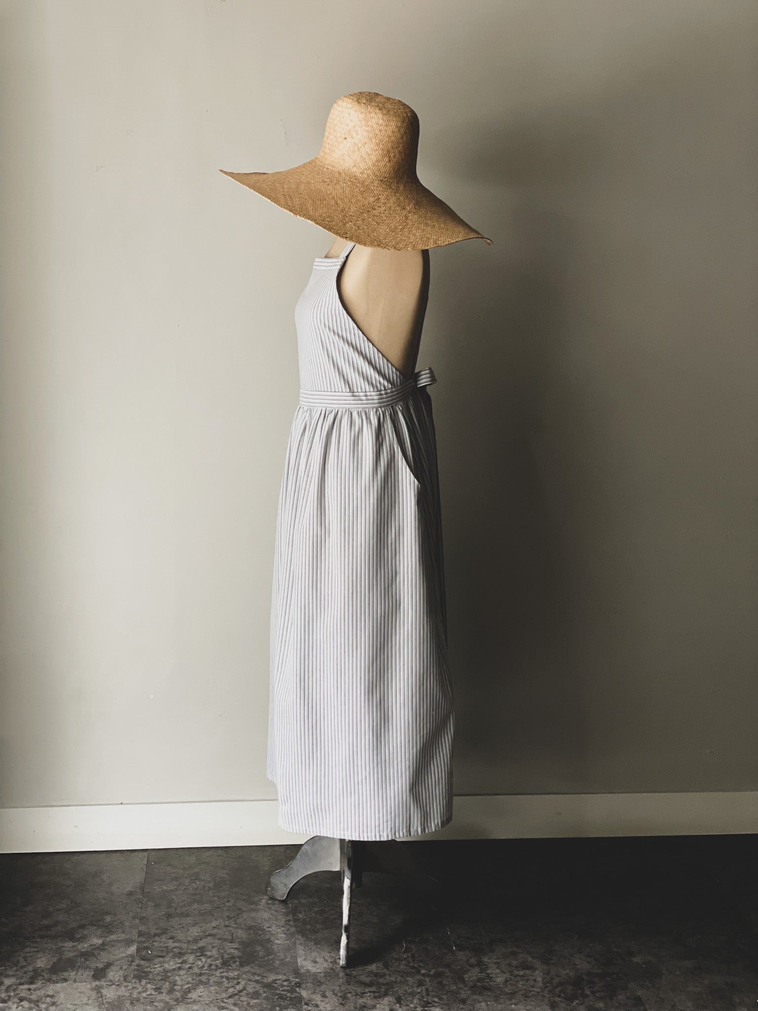 Made from soft striped patterned linen with our signature color of white, light grey and robin’s egg green. Its straps are adjustable making it easy to wear for every body types. Such a sweet looking apron isn’t she?