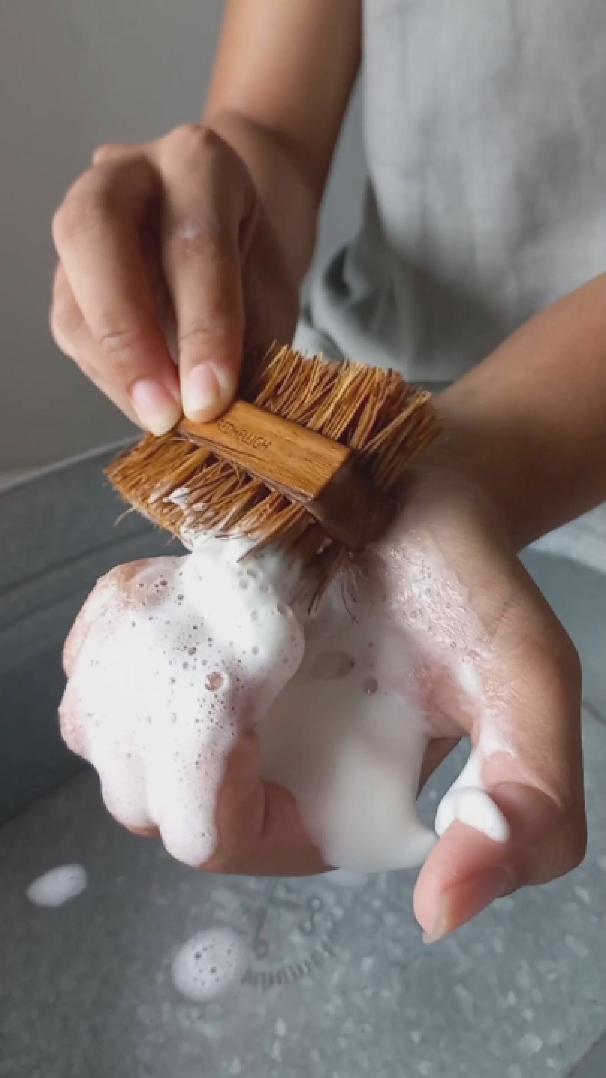 Small yet powerful, with firm teak handle and coconut fibre bristles. Put it next to your soap in the kitchen sink or bathroom vanity, ready for scrubbing the hands and cleaning the fingernails & toenails.