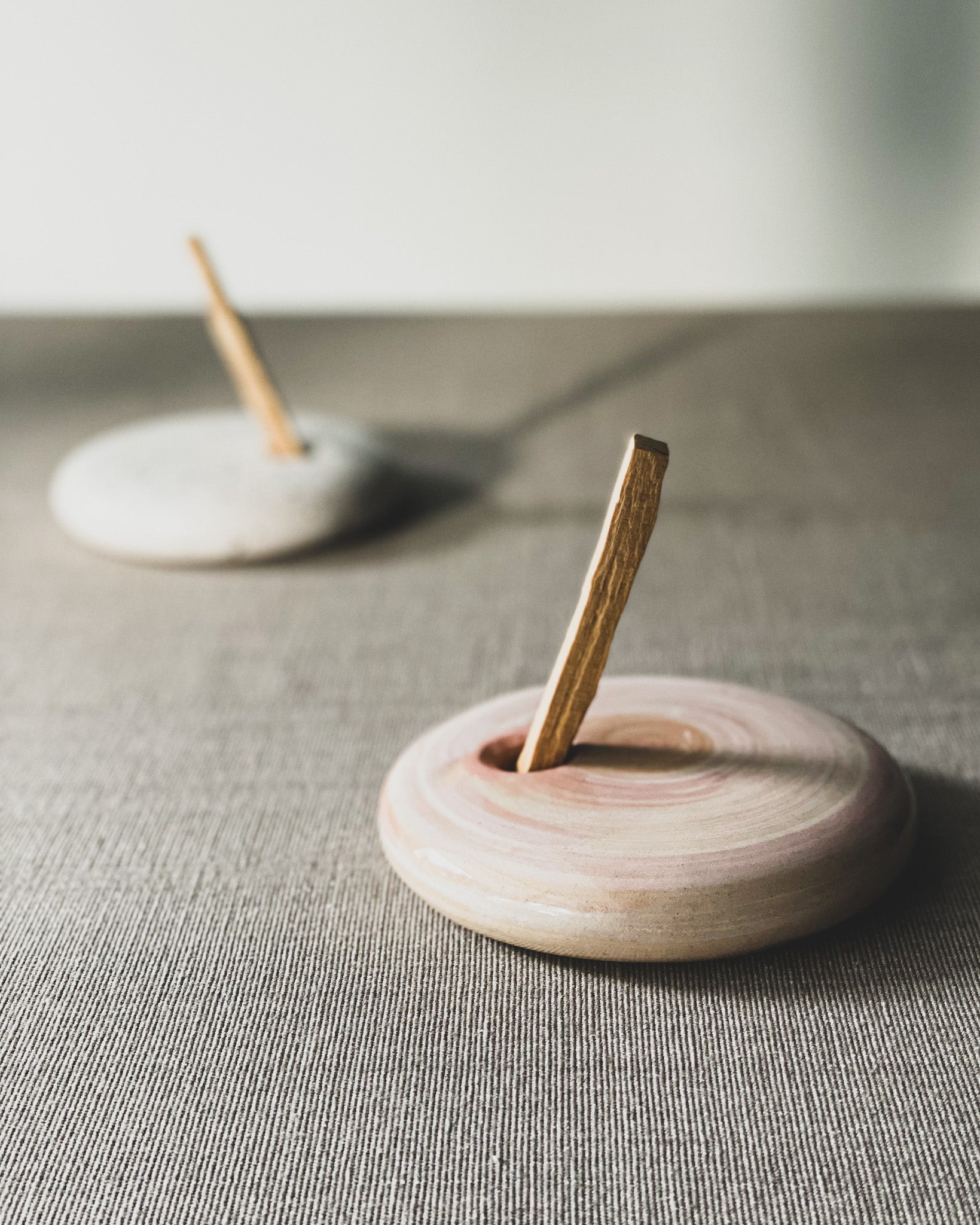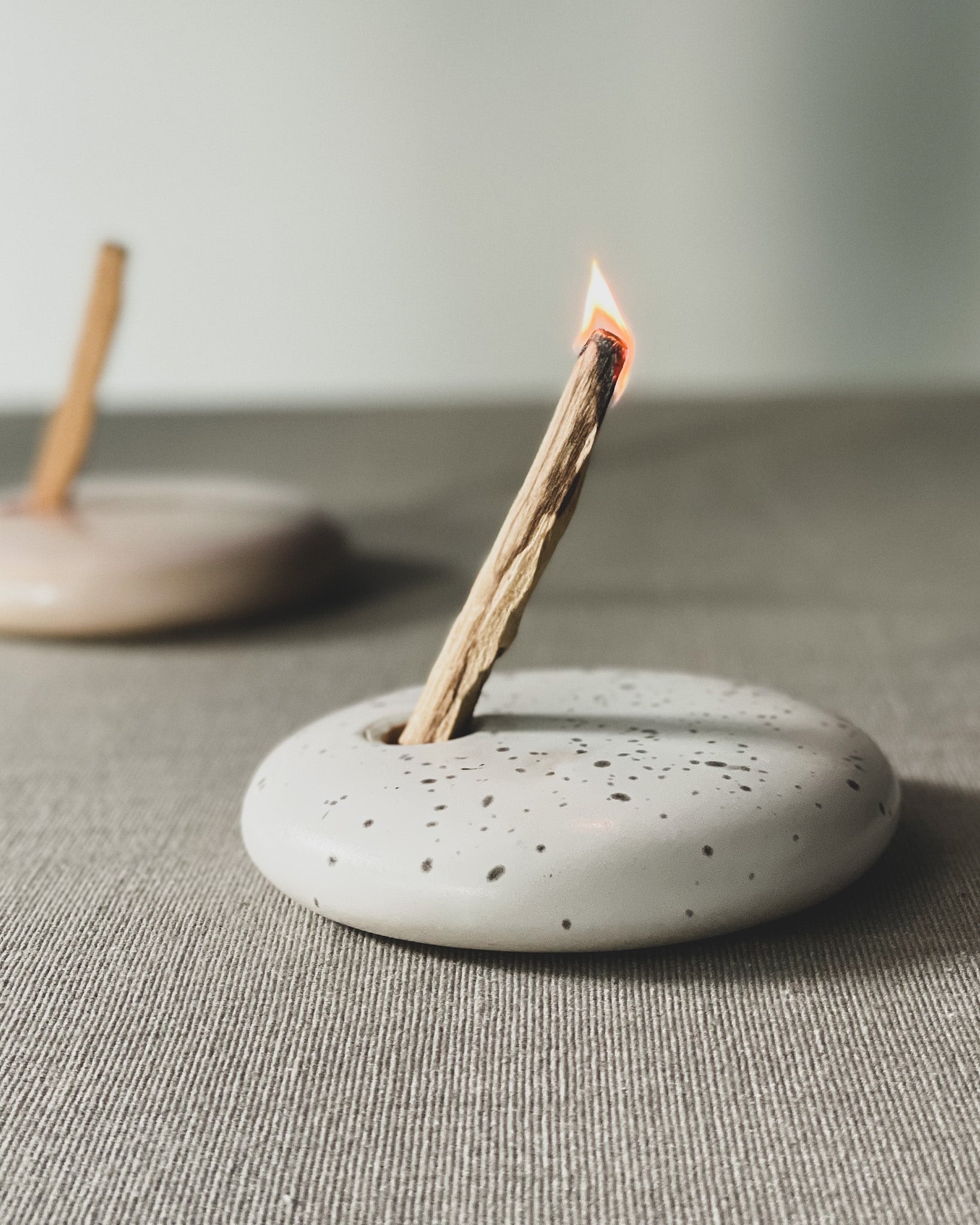 - Place a Palo Santo Stick on Enna’s Closet Orbit Palo Santo Stick Holder.