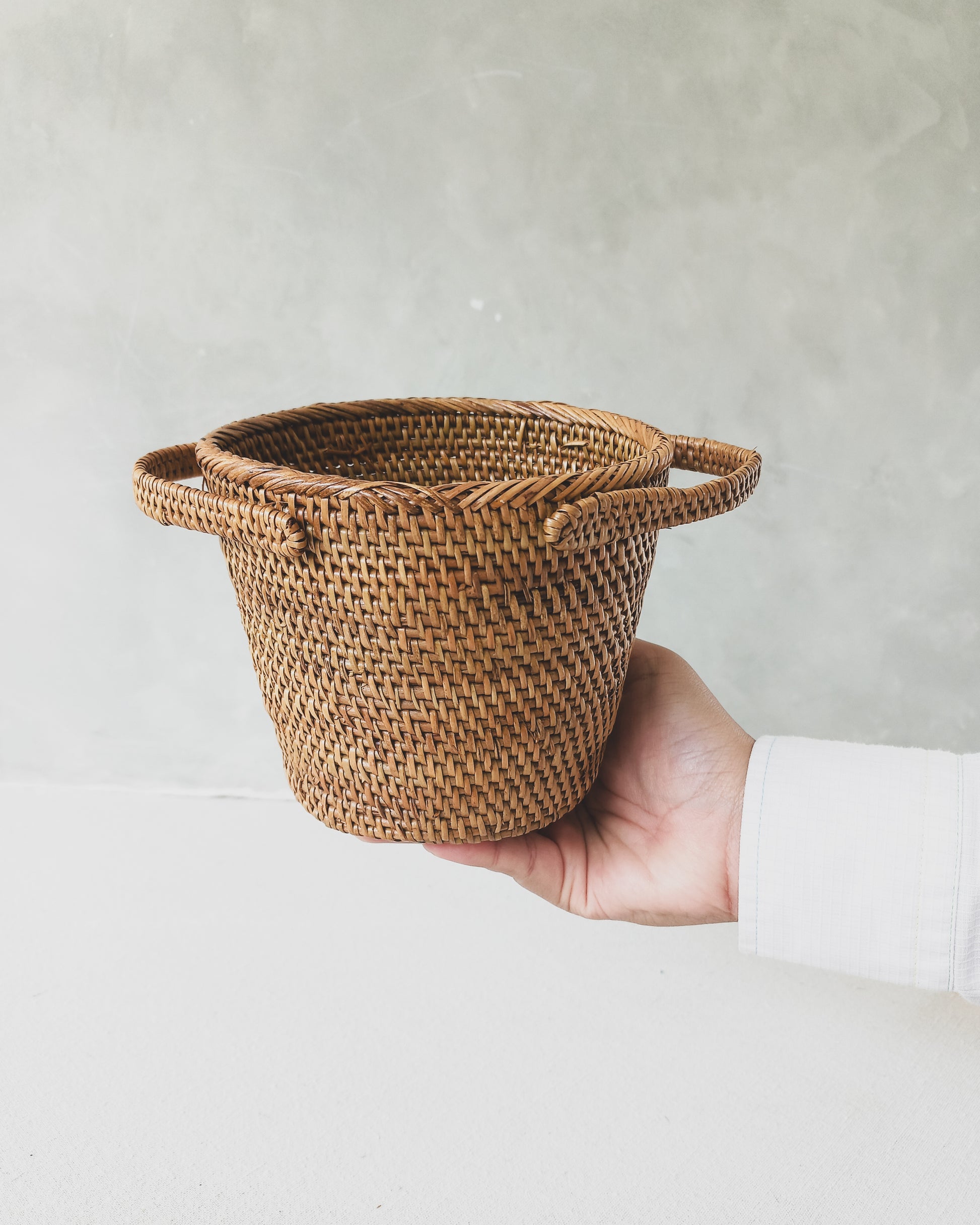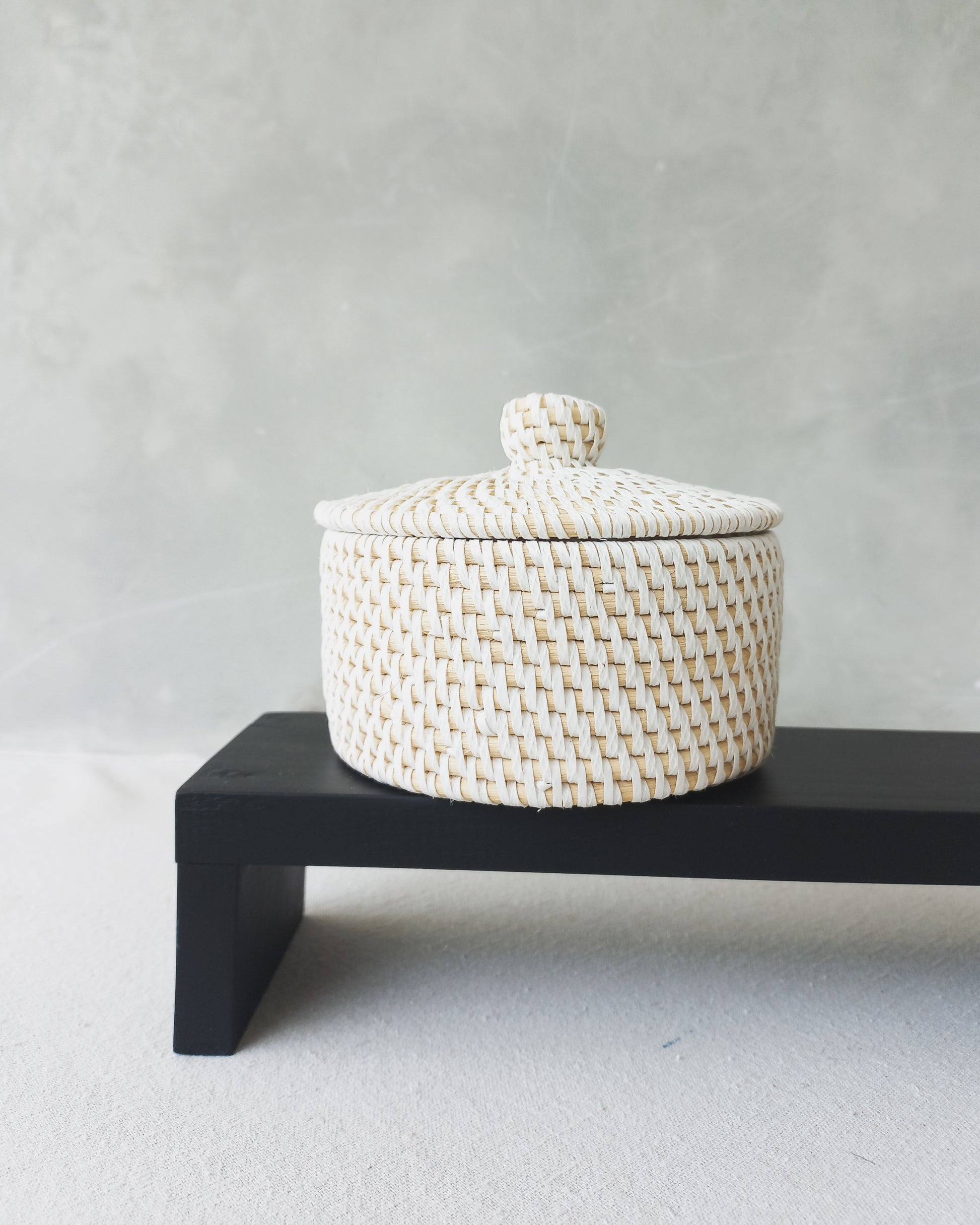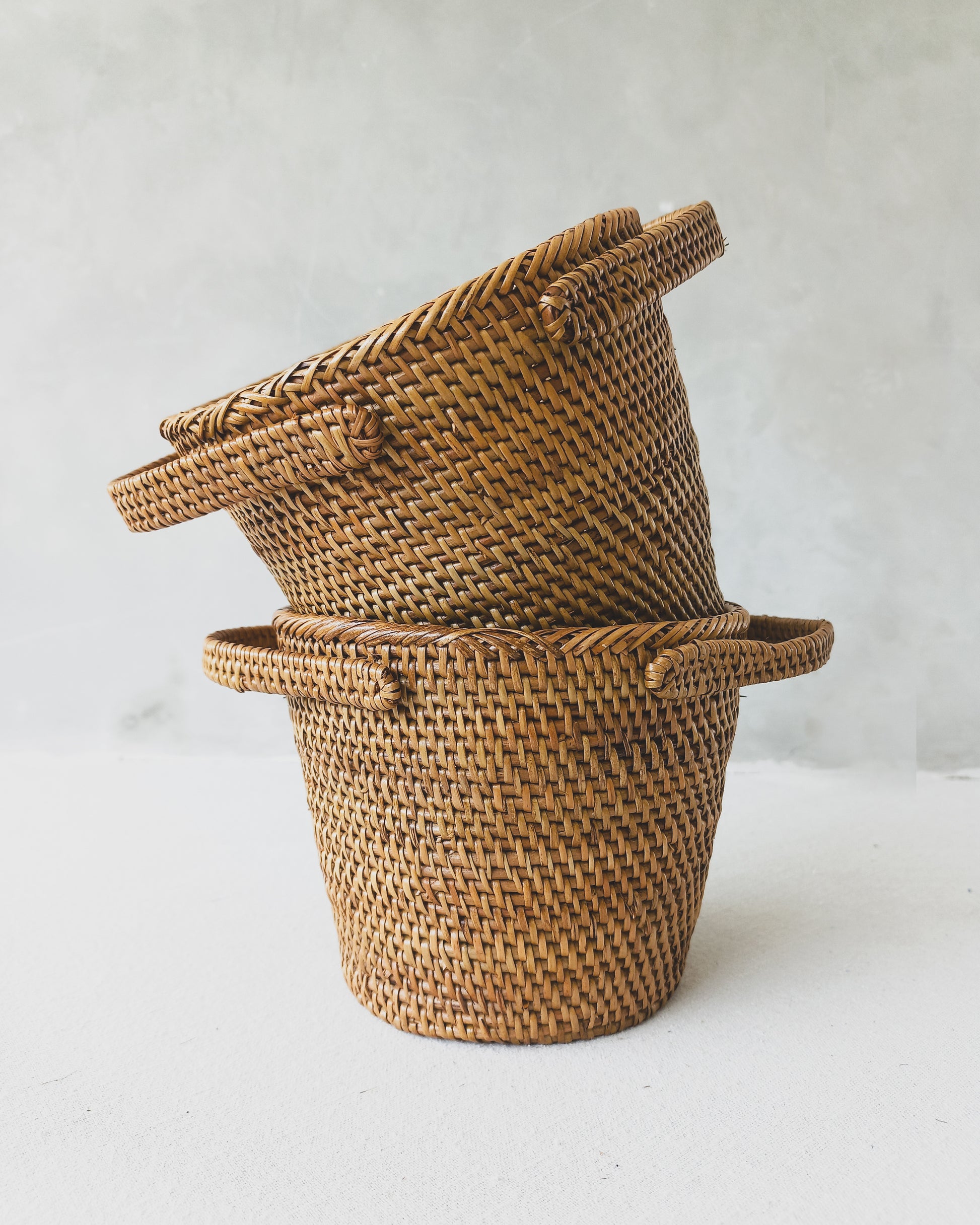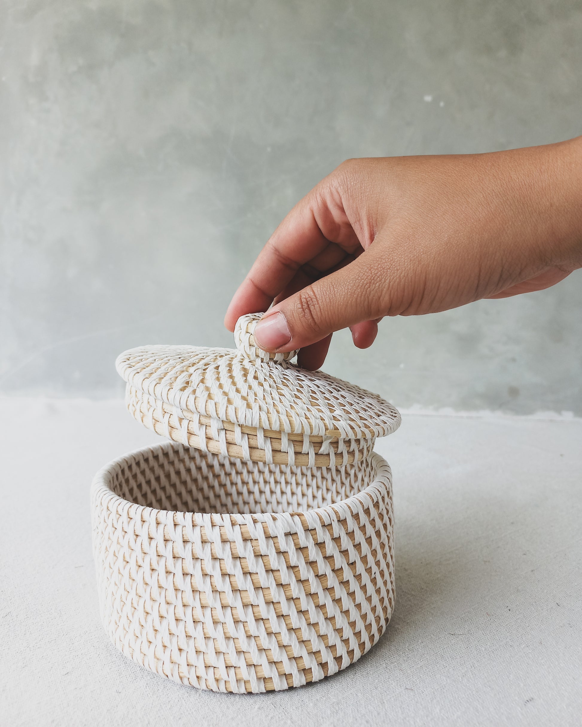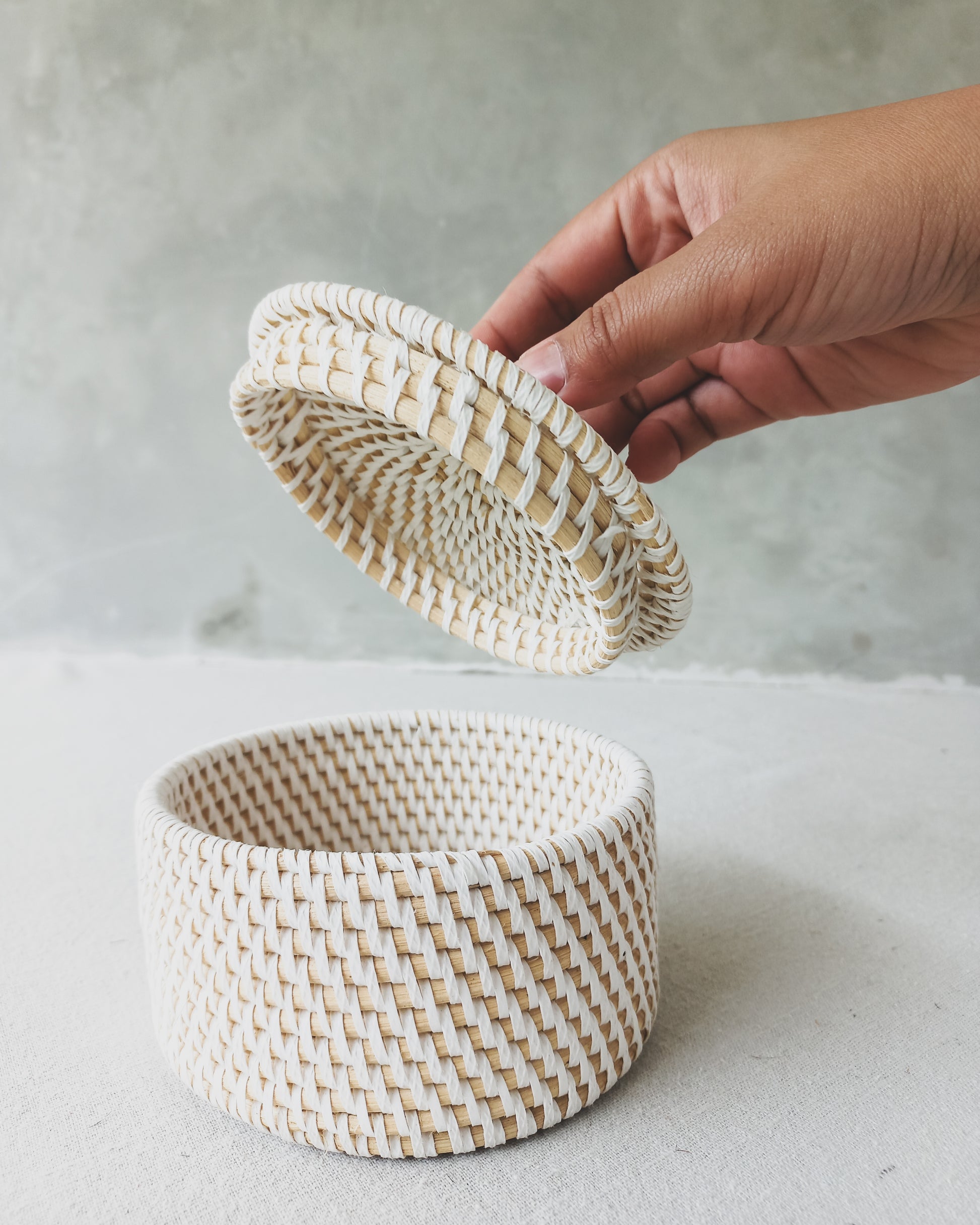 Product Dimension: Ate Basket Small With Handle - Natural ( D: 14 X H: 12 CM) Ate Basket Small With Lid - White (D: 12,5 X H: 7 CM)